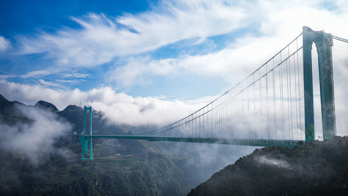 2025年9月28日,世界第一高橋——貴州花江峽谷大橋建成通車(chē)?;ń瓖{谷大橋是貴州六枝至安龍高速公路的控制性工程,大橋全長(zhǎng)2890米,主跨徑1420米,是目前世界山區(qū)峽谷第一大跨度鋼桁梁懸索橋;其橋面距水面垂直高度625米,是新的世界第一高橋。