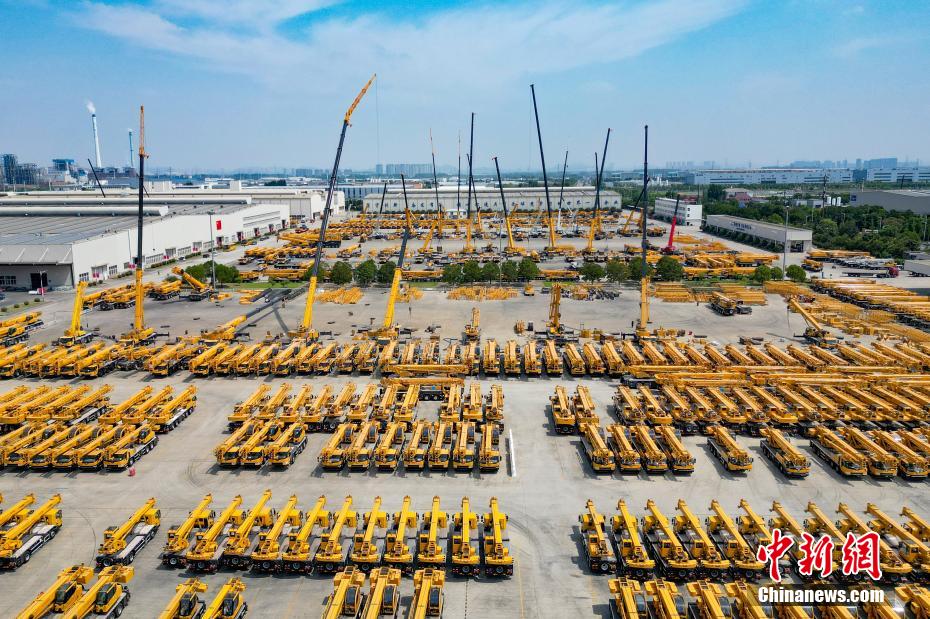 資料圖:徐工集團(tuán)生產(chǎn)車(chē)間外停放的起重機(jī)。(無(wú)人機(jī)照片)泱波 攝