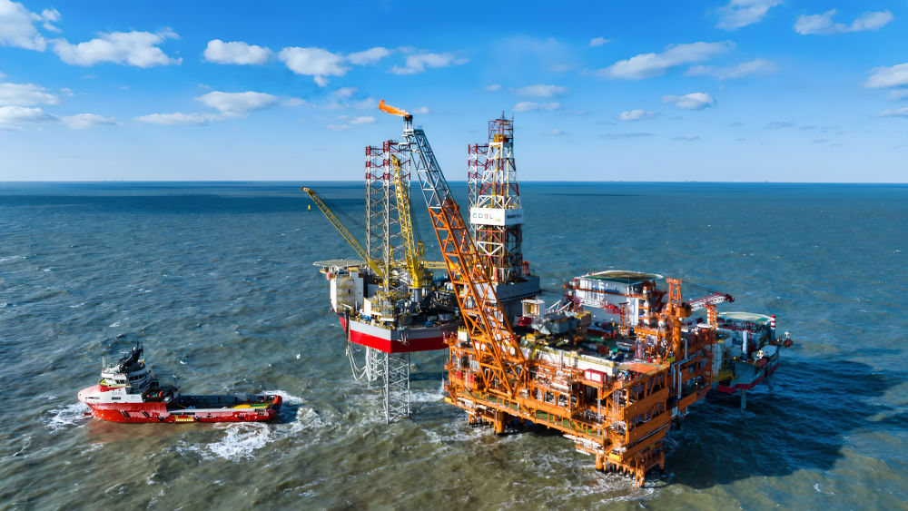 這是2025年2月8日拍攝的渤中26-6油田一期開(kāi)發(fā)項(xiàng)目海上作業(yè)平臺(tái)(無(wú)人機(jī)照片)。新華社發(fā)(杜鵬輝 攝)