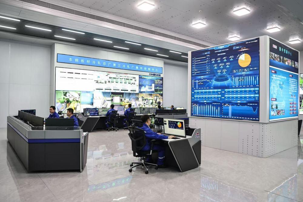 工作人員在鞍鋼集團所屬的本鋼板材冷軋總廠第三冷軋廠集控中心監(jiān)控設(shè)備運行情況。