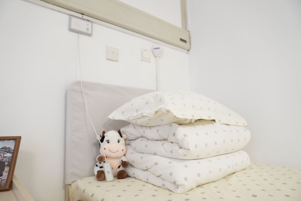 銀齡老年公寓的床位旁,都配有對(duì)講裝置(2月10日攝)。