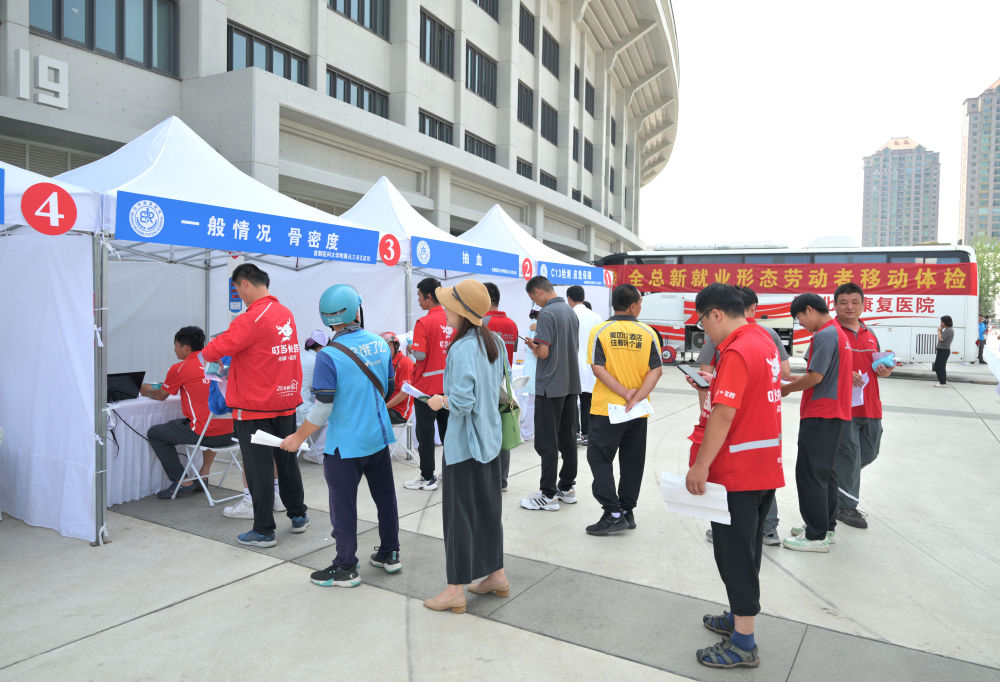 2024年6月13日,中華全國總工會在北京工人體育場舉辦新就業(yè)形態(tài)勞動者移動體檢專項(xiàng)工作啟動儀式,現(xiàn)場為數(shù)百名貨車司機(jī)、網(wǎng)約車司機(jī)、快遞員、外賣配送員等提供內(nèi)外科、生化、心電、超聲等項(xiàng)目檢查。2024年,各級工會為全國超過50萬名新就業(yè)形態(tài)勞動者提供移動體檢服務(wù),建立新就業(yè)形態(tài)勞動者職業(yè)健康檔案庫。