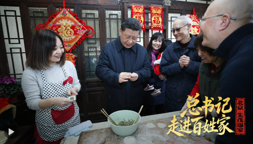 2019年春節(jié)前夕,習(xí)近平總書記走進(jìn)北京市東城區(qū)草廠四條胡同。在居民朱茂錦家里,總書記與他們一家邊包水餃邊聊家常??倳浶χf:“我家里也愛包茴香餡的。多年來(lái)因工作關(guān)系我沒包過餃子了,你們看,越包越好。我們的生活也是這樣,越過越好!”