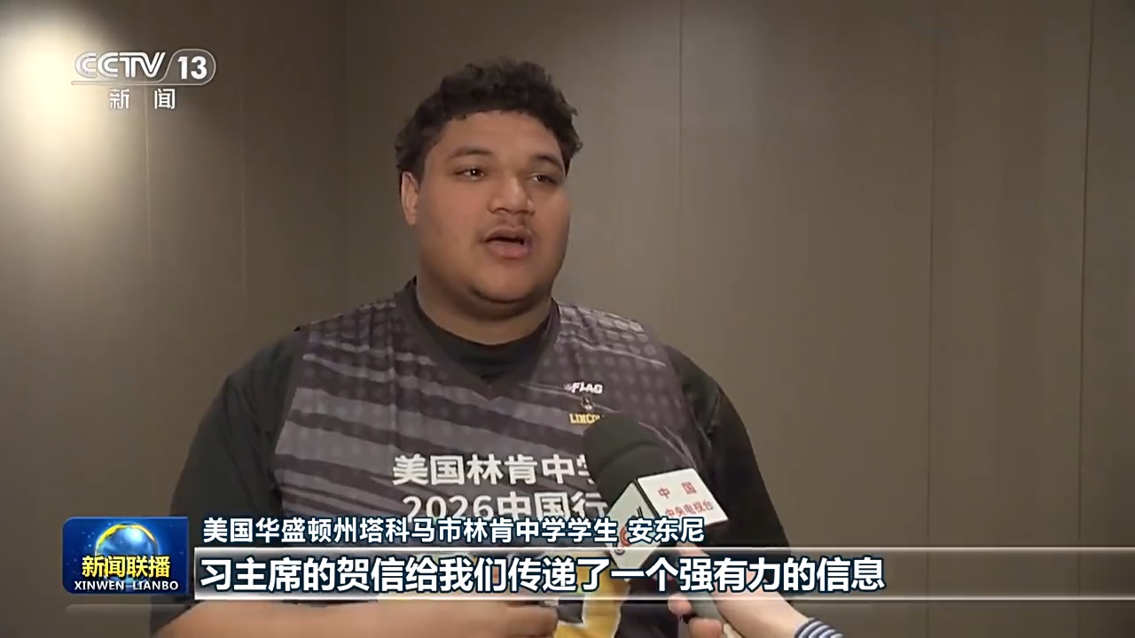 美國華盛頓州塔科馬市林肯中學學生 安東尼:習主席的賀信給我們傳遞了一個強有力的信息,讓我們堅信彼此學習、相互理解就能讓人心貼得更近。我要把我親身體驗所經(jīng)歷的一切,把我看到的真實的、充滿活力的中國,講給我家鄉(xiāng)的朋友們聽。