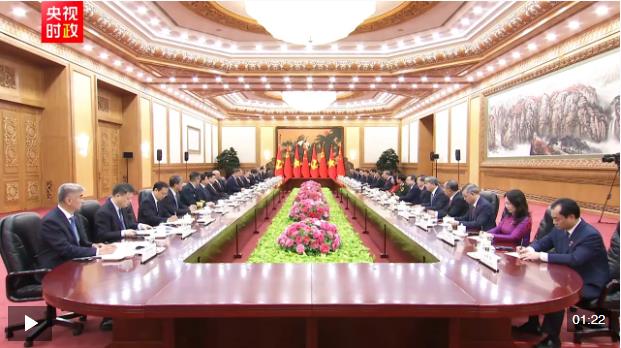 習近平指出,你當選越南國家主席后第一時間到訪中國,體現(xiàn)了你對發(fā)展中越關系的高度重視。無論國際形勢如何變化,中方始終將越南作為周邊外交優(yōu)先方向,愿同越方秉持初心、賡續(xù)友誼,團結(jié)協(xié)作、相互支持,高質(zhì)量推進全面戰(zhàn)略合作,加快構(gòu)建更高水平具有戰(zhàn)略意義的中越命運共同體。