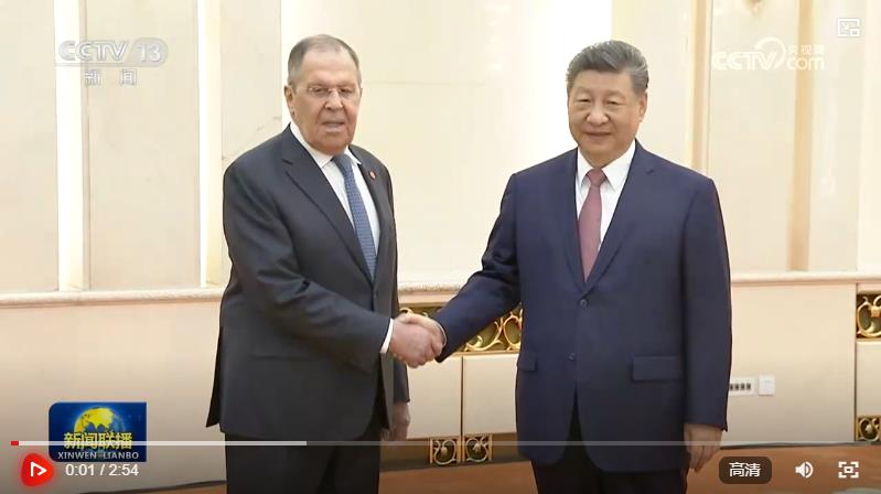 4月15日上午,國家主席習近平在北京人民大會堂會見俄羅斯外長拉夫羅夫。