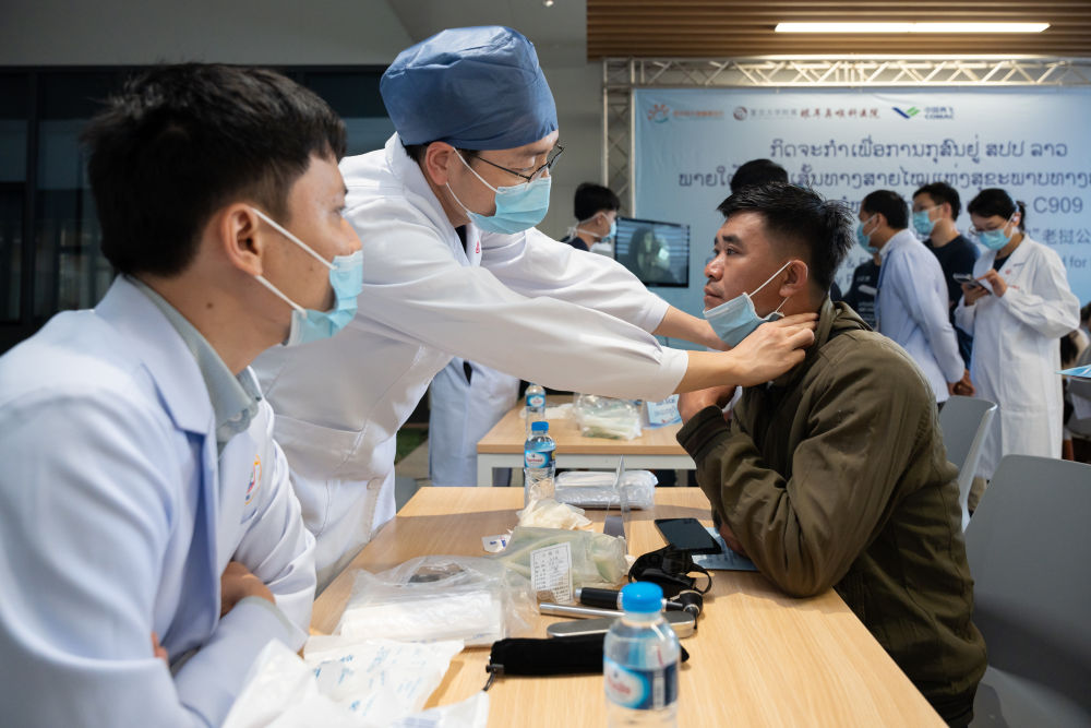 2月9日,復(fù)旦大學(xué)附屬眼耳鼻喉科醫(yī)院醫(yī)療團(tuán)隊(duì)在老撾萬象瑪霍索綜合醫(yī)院義診。新華社發(fā)(凱喬攝)