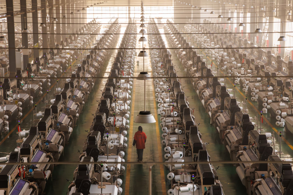2026年4月17日,在貴州省畢節(jié)高新技術(shù)產(chǎn)業(yè)開發(fā)區(qū)一家紡織企業(yè)內(nèi),機(jī)器開足馬力全力生產(chǎn)。新華社記者 劉續(xù) 攝