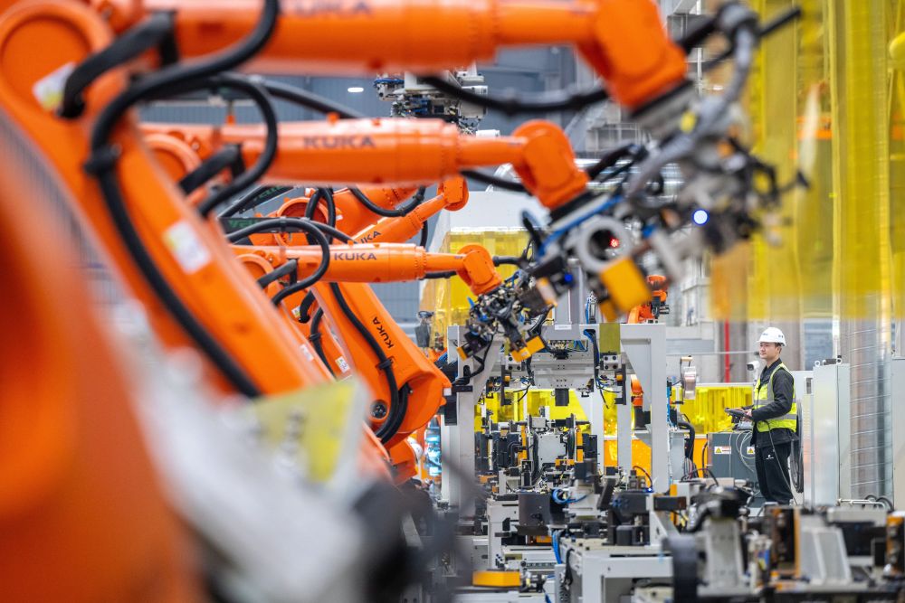 2026年3月16日,在浙江省湖州市長興縣呂山鄉(xiāng),諾力五期未來工廠的工人在智能化生產(chǎn)線上工作。新華社發(fā)(譚云俸 攝)