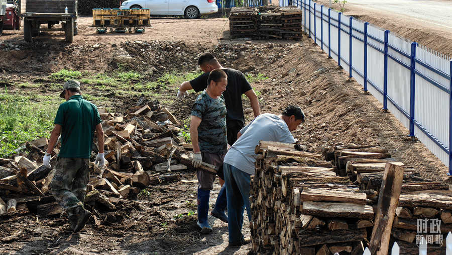 2023年9月,黑龍江龍王廟村村民正在整理家中被洪水沖垮的柴火垛。(總臺(tái)央廣記者潘毅拍攝)