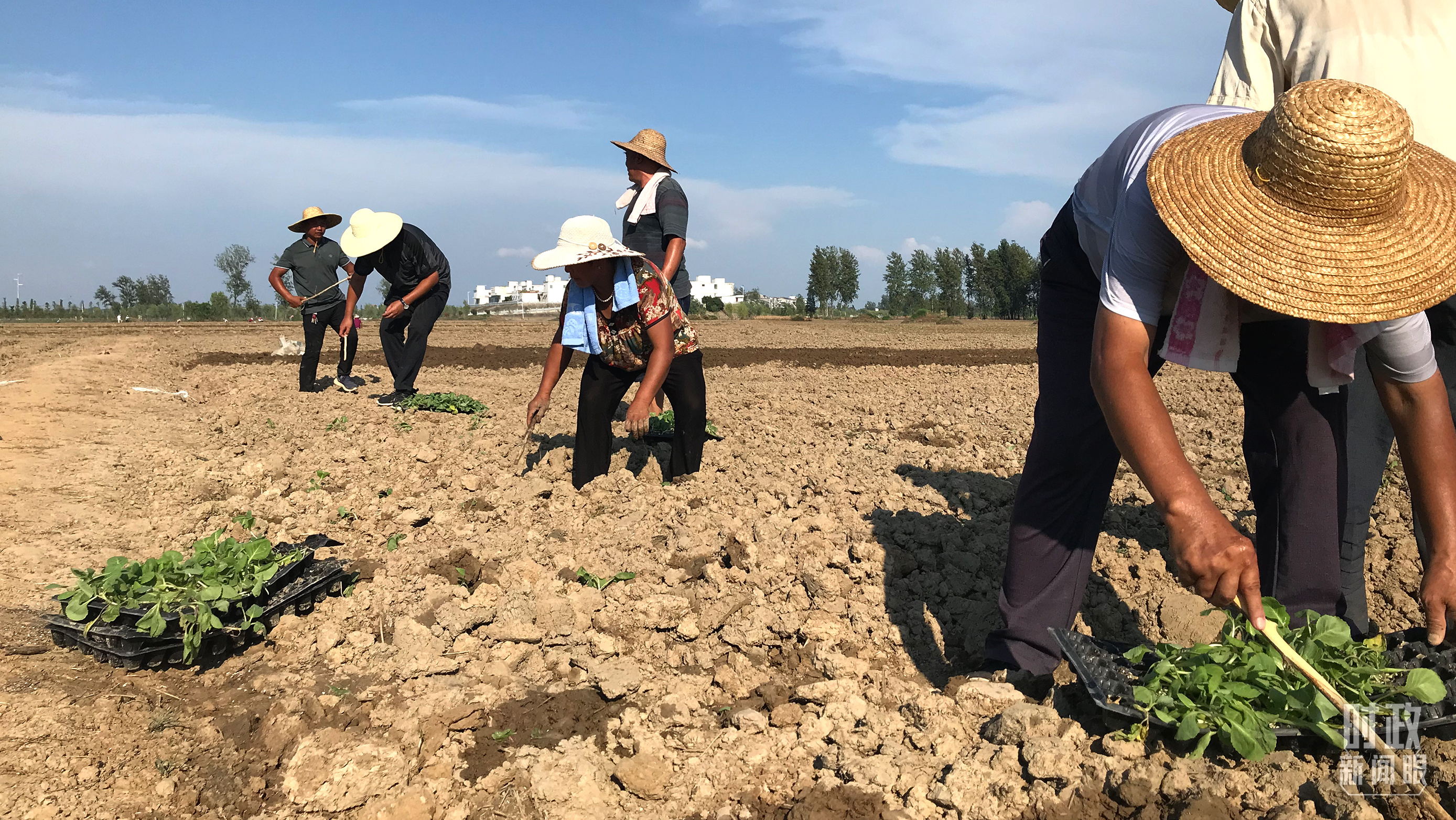 2020年8月,洪水退去后,安徽省蒙洼蓄洪區(qū)的村民正在補(bǔ)種蔬菜。(總臺(tái)央視記者石偉明拍攝)