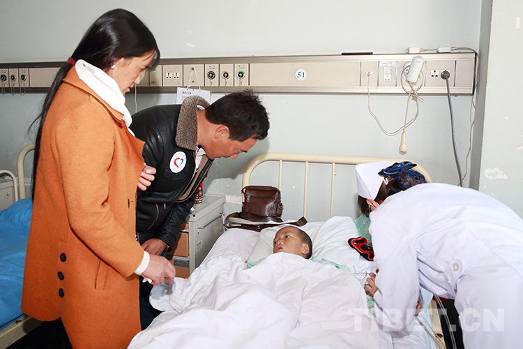 圖為手術(shù)前周軍(左三)看望次里白宗 攝影:陳衛(wèi)國