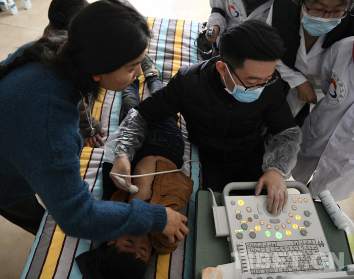 醫(yī)療隊(duì)和志愿者們不顧舟車(chē)勞頓和高原反應(yīng)的不適,認(rèn)真地對(duì)每一位前來(lái)篩查的小朋友進(jìn)行詳細(xì)的詢問(wèn)和認(rèn)真的檢查。對(duì)于有疑似癥狀的患者則現(xiàn)場(chǎng)利用從北京帶來(lái)的先進(jìn)設(shè)備進(jìn)行彩超診斷,并耐心和每一位患者家屬進(jìn)行交流和講解,在每個(gè)工作細(xì)節(jié)上精益求精。
