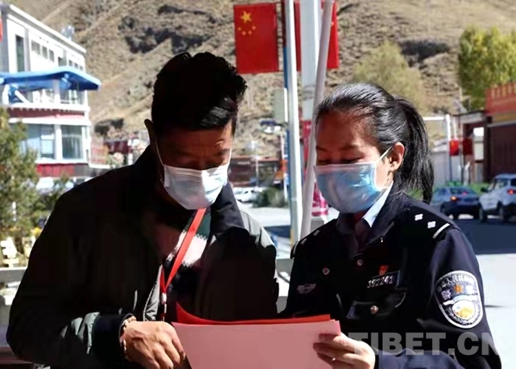 “出家門,戴口罩,少聚會,少串門,非常時期要留神。勤洗手,講衛(wèi)生,室內開窗多通風。舊口罩,要收起,有害垃圾要處理……”民警珠央正在使用漢藏雙語向駐地群眾宣講防疫口訣。