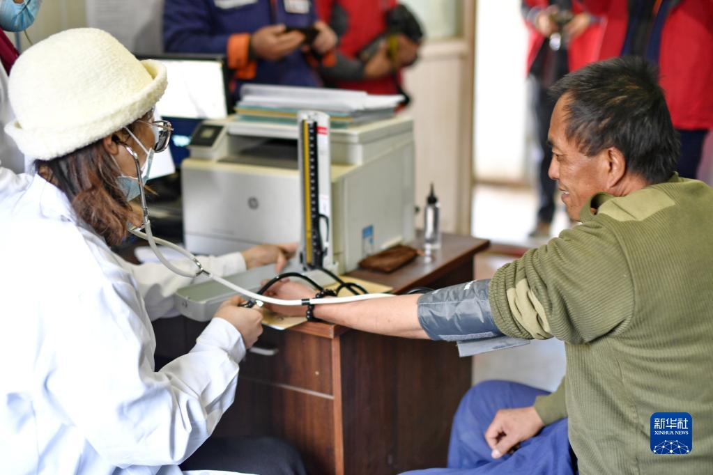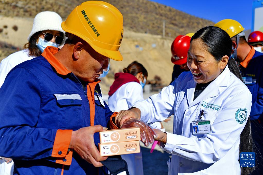 當(dāng)日,西藏康城腫瘤醫(yī)院的醫(yī)護(hù)人員來(lái)到拉薩市墨竹工卡縣,為工地工人義診,為他們送去冬天里的溫暖。