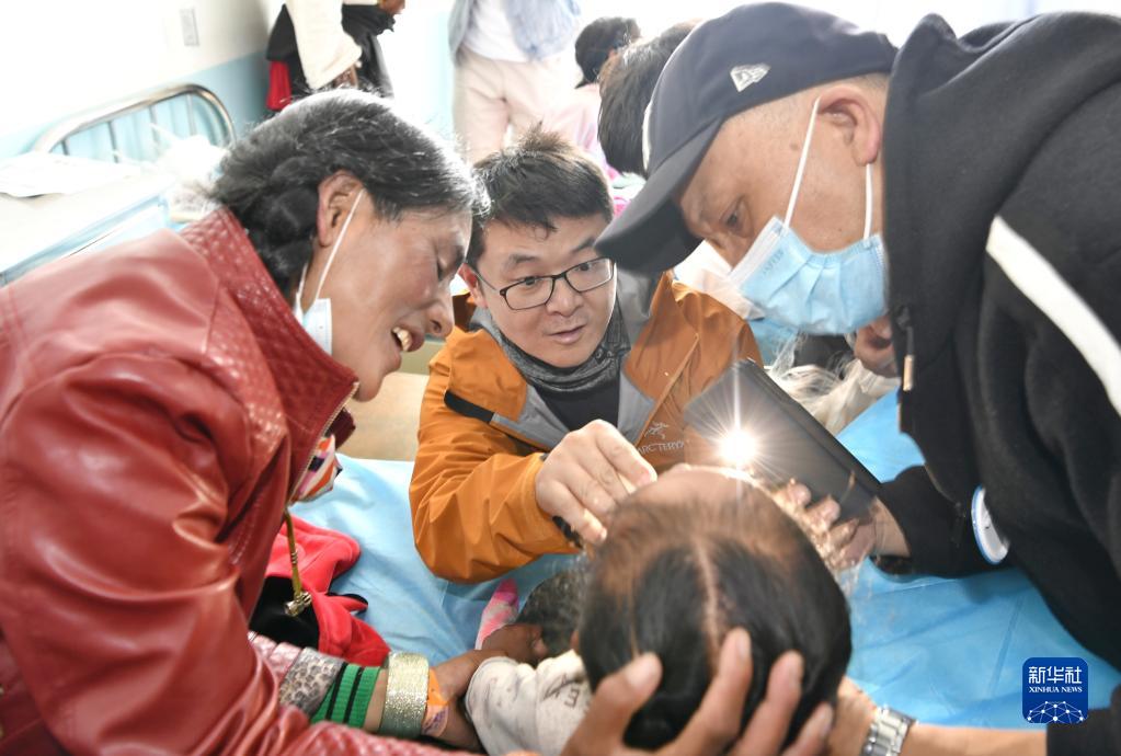 7月30日,中國醫(yī)學科學院整形外科醫(yī)院醫(yī)生王克明(中)在阿里地區(qū)人民醫(yī)院看望一名術后兒童。新華社記者 張汝鋒 攝