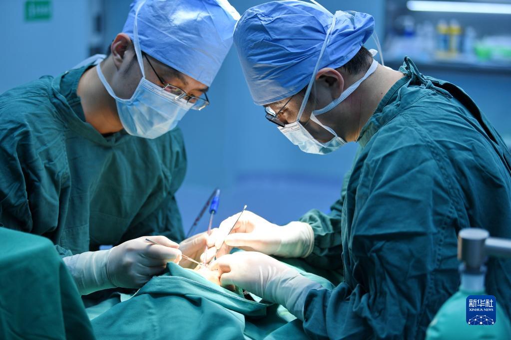 7月29日,在阿里地區(qū)人民醫(yī)院手術室,醫(yī)生為唇腭裂患者做修復手術。新華社記者 張汝鋒 攝