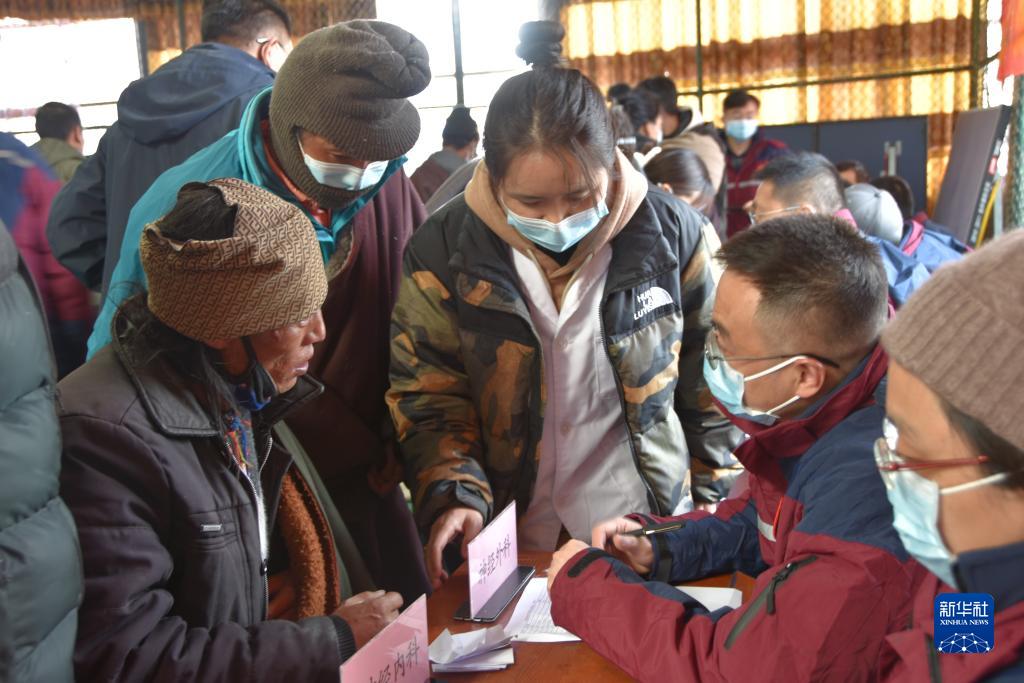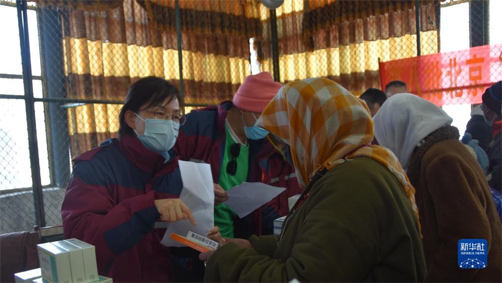 午后時分,天空仍然飄著小雪,來自北京援藏醫(yī)療隊的15名醫(yī)生剛下車,便馬不停蹄地開始工作。據(jù)援藏醫(yī)療隊醫(yī)務(wù)處處長趙萬全介紹,本次義診前,醫(yī)療隊已提前了解當?shù)厝罕姷亩喟l(fā)病類型,攜帶了充足的降血壓、常用抗生素等藥品。與此同時,他們還為納木湖鄉(xiāng)群眾開展“分級診療”,“把脈”群眾的健康狀況,對群眾所患病癥的進一步醫(yī)治給出相應(yīng)建議。
