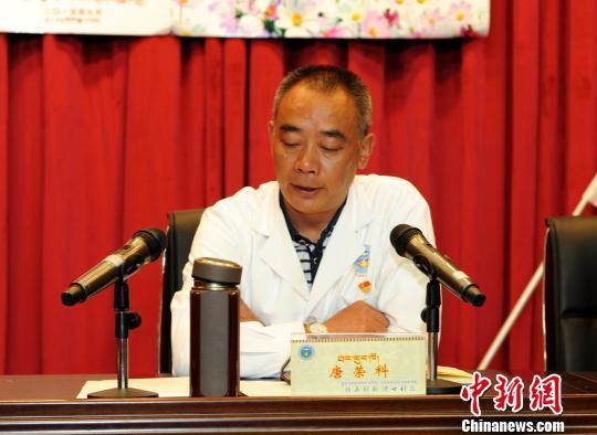 西藏自治區(qū)藏醫(yī)院黨委書記唐榮科為醫(yī)院黨員講黨課。 曾彬 攝