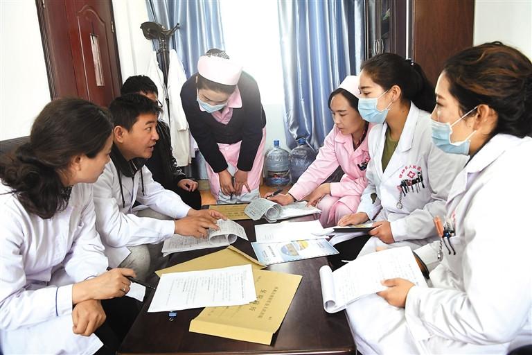圖為援藏醫(yī)生在與瓊結(jié)縣人民醫(yī)院醫(yī)務人員交流業(yè)務。記者 洛桑 攝