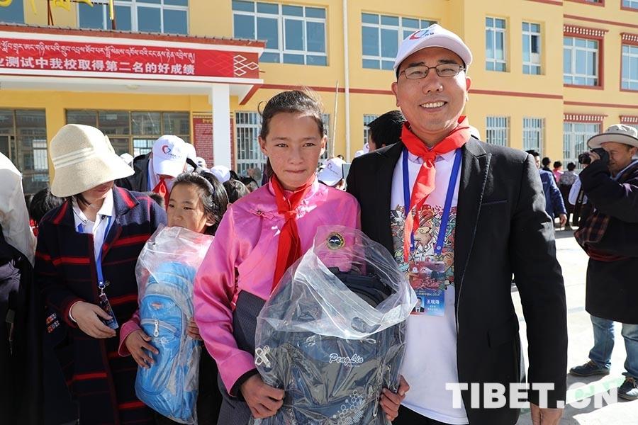 7月11日,王現(xiàn)海與隨行團(tuán)隊(duì)專家到瑪曲縣第一小學(xué)參加學(xué)生們的畢業(yè)典禮,并向?qū)W生代表送上學(xué)習(xí)用品。