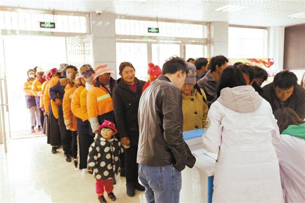 圖為類烏齊縣人民醫(yī)院為全縣環(huán)衛(wèi)工人進(jìn)行免費(fèi)健康體檢活動(dòng)現(xiàn)場(chǎng)。
