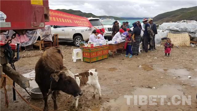 圖為昂仁縣醫(yī)護(hù)人員為群眾送醫(yī)送藥