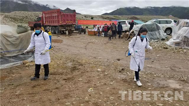 圖為昂仁縣醫(yī)護(hù)人員開(kāi)展定點(diǎn)消毒
