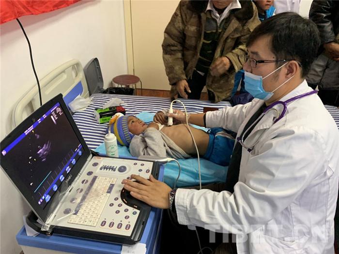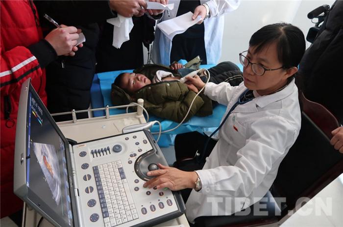 在丁青縣人民醫(yī)院,只用兩臺儀器便承擔起聽診任務的安貞醫(yī)院小兒心臟外科副主任醫(yī)師劉承虎,正安撫在家長懷里哭泣不止、僅有2歲多的益西貢培。小家伙兒似乎有些恐懼即將面臨的一切,而他的家長也有些手足無措,臉上寫滿了歉意。劉承虎并沒有介意,他和藹地安撫哭泣的孩子,保持著高度的耐心,等孩子平靜下來,再為他進行聽診,力求讓孩子保持平靜,確保結果準確?!斑@個孩子心跳聽起來不太正常,快讓他去接受檢查吧?!本瓦@樣,又一名患兒得到了救治的機會?!斑€有沒聽診的孩子么?”劉承虎向邊上的工作人員確認已經(jīng)沒有等待聽診的孩子后,起身來到病房外確認沒有了等候的孩子,便立刻進入超聲檢查室,拿起紙筆,開始幫助同伴進行患兒病情的記錄。每當有人讓他去休息時,他總是說“沒事,我們是專業(yè)的,記錄得更清楚?!蓖徽揪鸵镜綑z查結束,但他從未有過一句怨言。