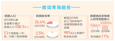 黨的十八大以來,青海省認(rèn)真貫徹落實(shí)習(xí)近平總書記關(guān)于扶貧工作的重要論述,把脫貧攻堅(jiān)作為第一民生來抓,始終堅(jiān)持精準(zhǔn)扶貧精準(zhǔn)脫貧基本方略,緊緊圍繞“扶持誰”“誰來扶”“怎么扶”,全力推進(jìn)黨中央決策部署落實(shí)落地。著力抓好作風(fēng)建設(shè),強(qiáng)化五級書記抓扶貧,層層壓實(shí)責(zé)任,讓干部沉下去,使工作實(shí)起來,補(bǔ)齊黨員干部在認(rèn)識、感情、能力、作風(fēng)上的短板。聚焦深度貧困地區(qū),加大政策資金投入力度,堅(jiān)持“挪窮窩”與“換窮業(yè)”并舉。圍繞增強(qiáng)貧困地區(qū)和貧困群眾造血功能這個根本性問題,加強(qiáng)產(chǎn)業(yè)幫扶、技能培訓(xùn)力度,確保貧困群眾持續(xù)穩(wěn)定增收。著力補(bǔ)齊基礎(chǔ)設(shè)施和公共服務(wù)領(lǐng)域短板,行業(yè)部門多方聯(lián)動、協(xié)同作戰(zhàn),累計(jì)投入行業(yè)扶貧資金157.7億元,深入實(shí)施十個行業(yè)扶貧專項(xiàng)行動。