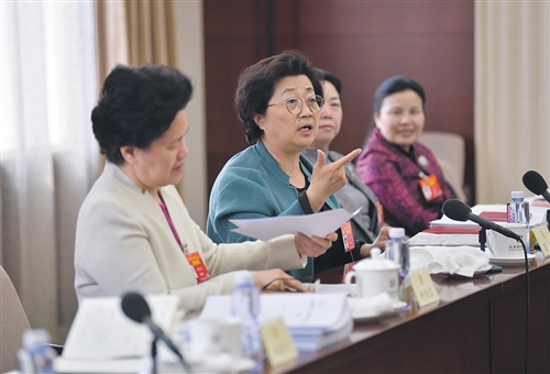 3月10日,全國(guó)政協(xié)婦聯(lián)界別在駐地舉行小組會(huì)議,討論政協(xié)工作。全國(guó)政協(xié)委員崔郁(左二)認(rèn)為,應(yīng)保證女性在基本醫(yī)療衛(wèi)生服務(wù)方面有更多獲得感。經(jīng)濟(jì)日?qǐng)?bào)-中國(guó)經(jīng)濟(jì)網(wǎng)記者 高興貴攝