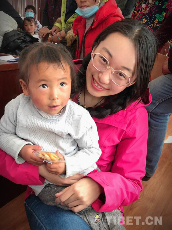 圖為姜心言下鄉(xiāng)義診中抱著藏族小朋友