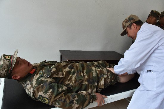 據(jù)悉,此次除了巡診駐地陸軍,還對(duì)武警部隊(duì)官兵、當(dāng)?shù)夭刈灏傩詹轶w看病,免費(fèi)送醫(yī)送藥,把溫暖健康送到每一名群眾官兵身邊。