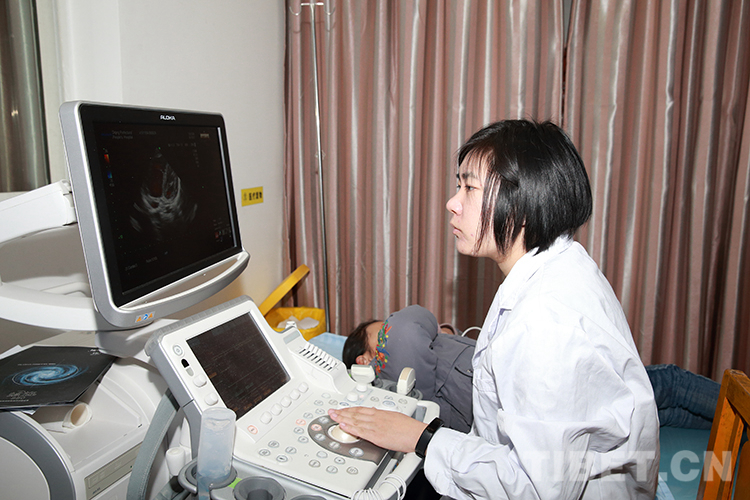 圖為李蕾為患兒做心臟超聲檢查 攝影:陳衛(wèi)國(guó)