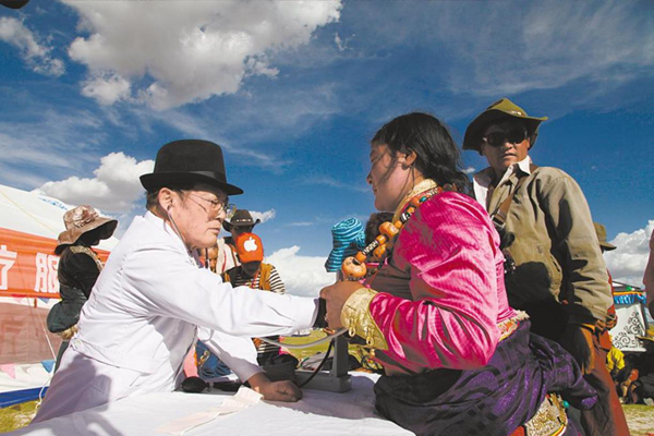 吳天一在牧區(qū)為藏族群眾義診。省高原醫(yī)學科學研究院供圖