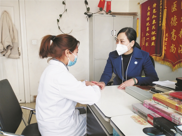 圖為肖霞(右)在詢問(wèn)醫(yī)生助理的工作情況。 記者 莫瑞英攝