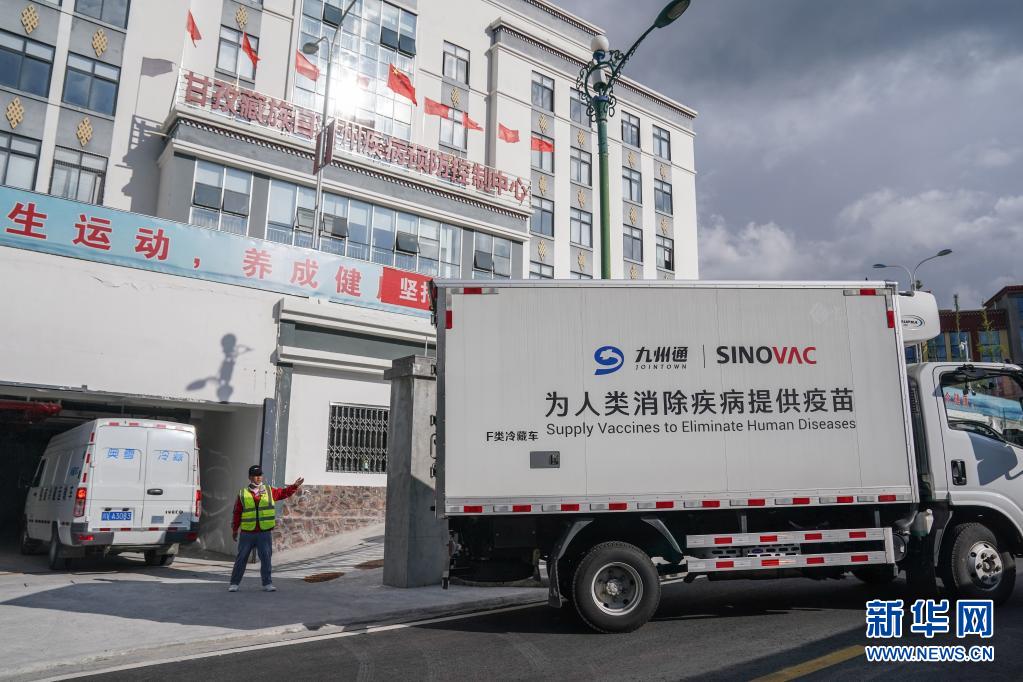 7月22日下午,運(yùn)送疫苗的冷鏈車歷經(jīng)40多個小時后到達(dá)四川甘孜藏族自治州疾控中心。新華社記者 彭子洋 攝