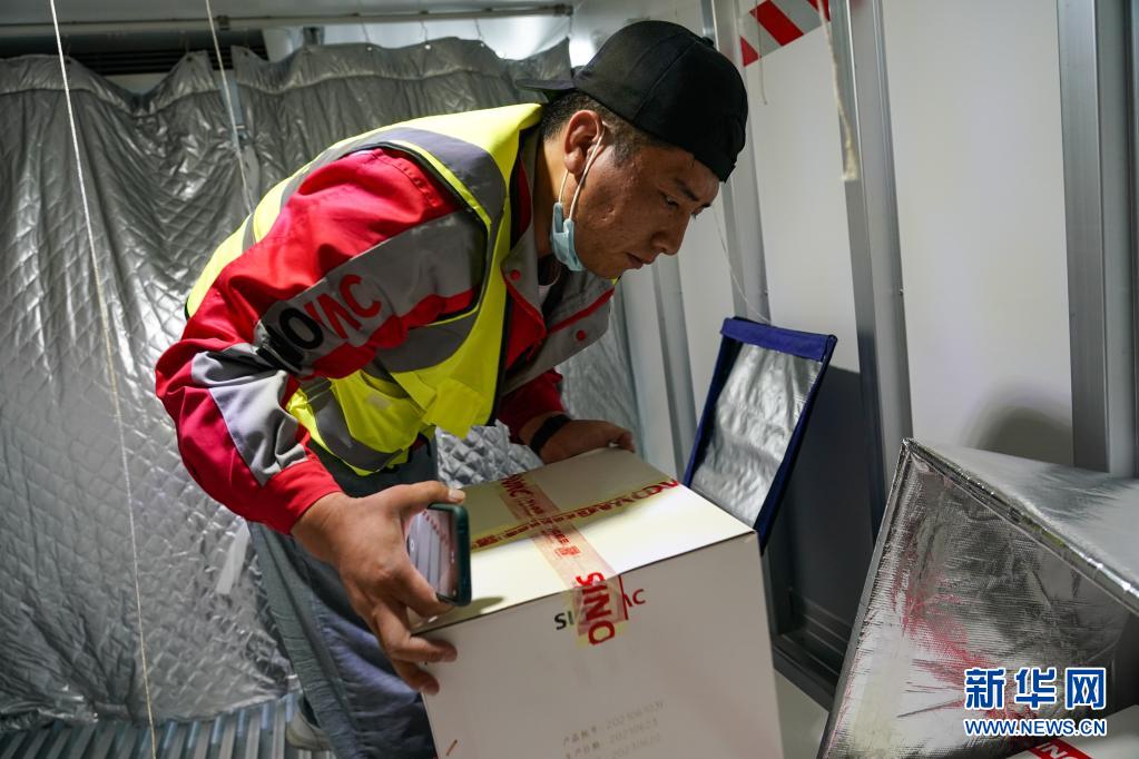7月22日,在四川甘孜州疾控中心,工作人員將疫苗搬入當(dāng)?shù)氐睦滏溰?。新華社記者 彭子洋 攝