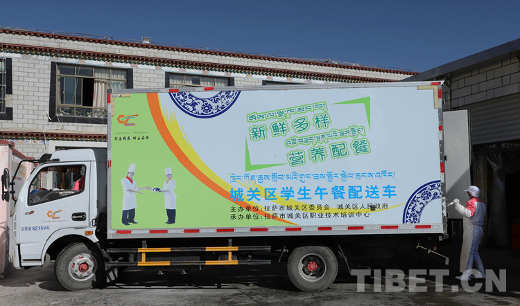 中國西藏網訊 驗菜、摘菜、清洗、加工、烹飪、打包、準點送往學校,這是拉薩市城關區(qū)學生午餐配送中心每天的工作。