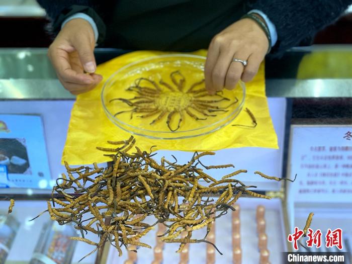圖為商家為客戶(hù)挑選冬蟲(chóng)夏草。中新社記者 孫睿 攝