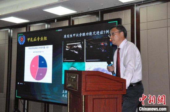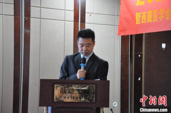 圖為巴桑頓珠介紹西藏自治區(qū)人民醫(yī)院普通外科和西藏醫(yī)學(xué)會普通外科分會的概況?!〉┰鲐暽?攝