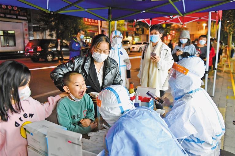 “社區(qū)共設(shè)有5個(gè)核酸采樣點(diǎn),承擔(dān)著轄區(qū)內(nèi)所有人員的核酸采樣任務(wù),點(diǎn)位人流量大,人員復(fù)雜,采樣任務(wù)重。”甲瑪林卡社區(qū)黨支部書(shū)記賀向前說(shuō),“接到全員核酸篩查的通知后,我們社區(qū)立即行動(dòng),當(dāng)天晚上完成采樣3000余份,工作人員從當(dāng)天晚上8點(diǎn)忙到次日凌晨5點(diǎn)多,上午9點(diǎn)又開(kāi)始了新一輪的核酸采樣工作?!?/p>
