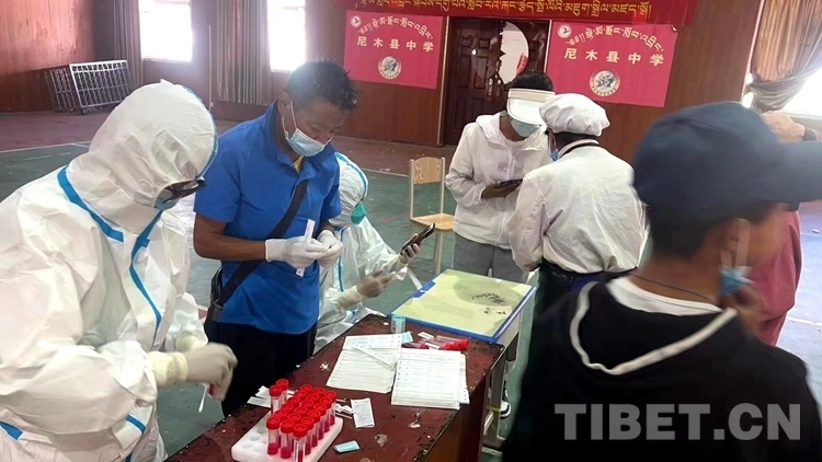 圖為尼木縣中學(xué)師生在校封閉管理期間按照要求進行核酸檢測 拉薩市尼木縣中學(xué)供圖