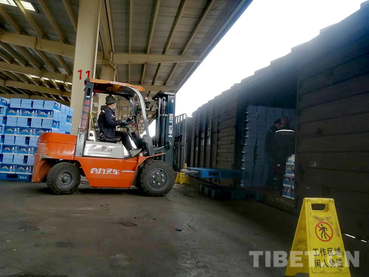 圖為拉薩車務(wù)段組織到站物資卸載