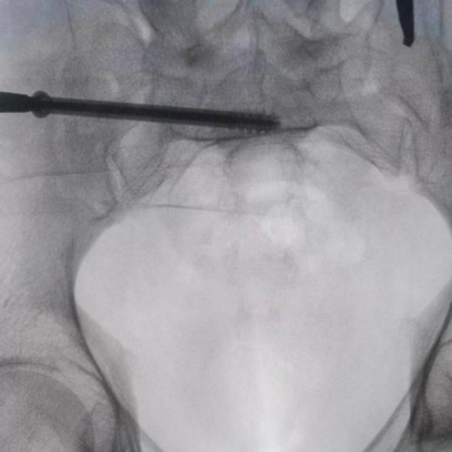 圖為透視下見置入的骶髂螺釘,位置、長度精準(zhǔn),無絲毫偏差