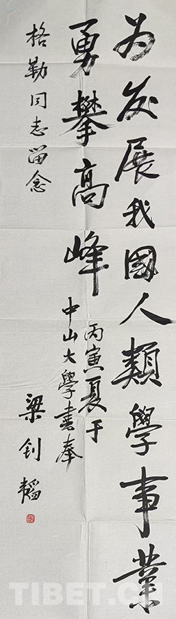 這次我給中大捐贈(zèng)了珍藏已久的梁先生為我題寫(xiě)的畢業(yè)贈(zèng)言。他要我為發(fā)展我國(guó)人類(lèi)學(xué)事業(yè)勇攀高峰,我知道以我的能力和年齡,今生不一定能攀登高峰,但我依然在努力,依然在奮斗。近二十多年來(lái),我在一些大專(zhuān)院校兼任博士生導(dǎo)師,為培養(yǎng)中國(guó)馬克思主義藏學(xué)家和人類(lèi)學(xué)家而辛勤耕耘,尤其是2011年從行政崗位退下來(lái)以后,我已經(jīng)全身心地投入到培養(yǎng)中國(guó)藏學(xué)和人類(lèi)學(xué)接班人的教學(xué)工作中,不辜負(fù)梁釗韜導(dǎo)師的贈(zèng)言和中大領(lǐng)導(dǎo)以及人類(lèi)學(xué)老師們期望,為中國(guó)藏學(xué)和人類(lèi)學(xué)的發(fā)展發(fā)揮余熱,我樂(lè)此不疲。至少我要對(duì)得起榮獲的兩個(gè)“第一”的光環(huán)吧。(中國(guó)西藏網(wǎng) 文/格勒 圖片均為作者提供)