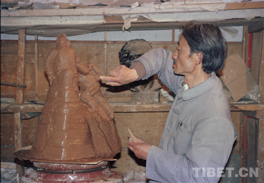 緊接著到來的六十年代,我的主要工作是畫主席像,雕塑主席像??梢哉f,我的雕塑藝術(shù)是從那時(shí)開始的。此前雖然也做過一些,但當(dāng)軍管會(huì)要求我為自治區(qū)革委會(huì)的成立塑一尊大像時(shí),我壯起膽子申請(qǐng)去北京學(xué)習(xí)石膏翻模。經(jīng)軍管會(huì)批準(zhǔn),拉薩警備區(qū)司令簽字,買了機(jī)票去北京,一學(xué)就是五個(gè)月。