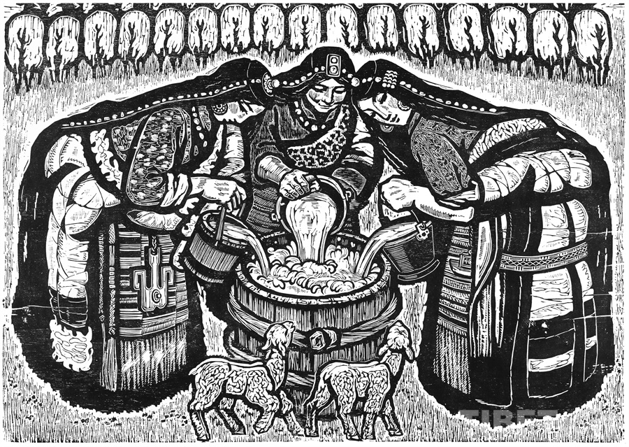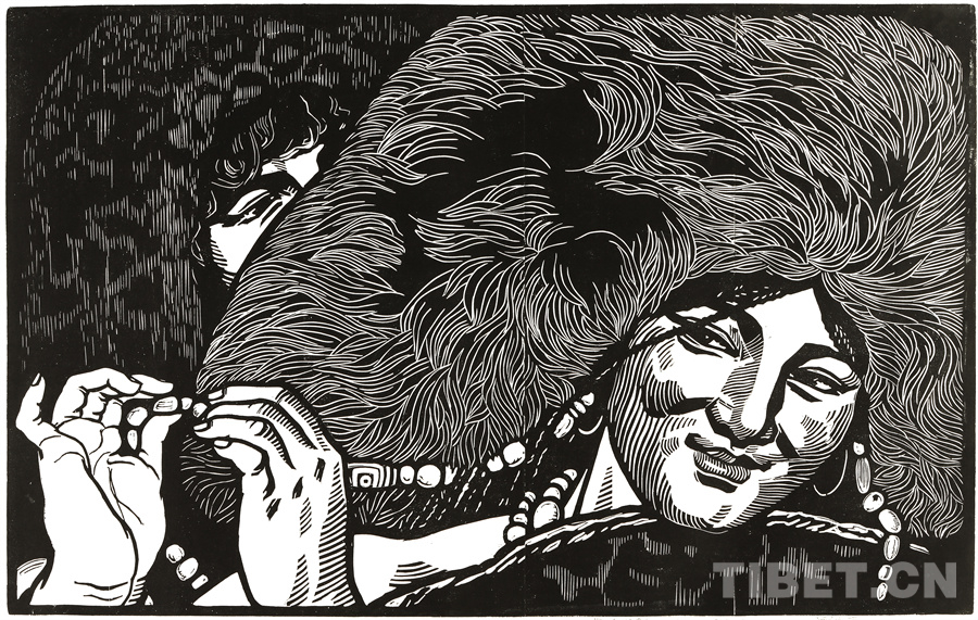 這些年來可以肯定的是我的創(chuàng)作道路和方向是基本對(duì)頭的。前幾年有人寫文章評(píng)論說,在外來思想影響已很豐富、多元化格局已經(jīng)形成的情況下,差不多只有版畫還恪守著現(xiàn)實(shí)主義的創(chuàng)作道路,而且在美術(shù)領(lǐng)域起到了導(dǎo)向作用。順便為版畫說句話:搞版畫的人一直尊重生活,認(rèn)定生活是第一性的,版畫一開始就是在革命的環(huán)境中發(fā)生、發(fā)展起來的。版畫隨著四大發(fā)明發(fā)源于中國(guó)的土壤,后來被歐洲發(fā)展了,反過來又影響到中國(guó)。老大的中國(guó)有發(fā)明權(quán),但并沒有把它發(fā)展起來。魯迅先生為了推動(dòng)版畫的發(fā)展,特別介紹了德國(guó)版畫和俄羅斯版畫為代表的版畫代表作和代表人物,還有美國(guó)的肯特,比利時(shí)的麥綏萊爾。介紹文字很精彩,無論對(duì)生平、對(duì)作品的介紹都很精彩。他推出的那些版畫大師,至今仍巍然屹立在美術(shù)史上。他對(duì)版畫的深刻而獨(dú)到的理解很可貴。國(guó)外有些不很知名但有好作品的,他也介紹到。而且給我們指出哪些是范本,我們一看果然耳目一新。魯迅先生的提倡影響了中國(guó)版畫的發(fā)展,進(jìn)入了一個(gè)嶄新的階段,形成所謂新興版畫。這段時(shí)間并不長(zhǎng),也就六七十年吧。版畫統(tǒng)領(lǐng)潮流,面向生活的潮流。所以它的路子就很正,這個(gè)正就是正統(tǒng),一直發(fā)展得很健康。我從小就受影響,我當(dāng)時(shí)所看到的版畫都是反映民間生活的東西:戰(zhàn)爭(zhēng)年代反映民間的疾苦與災(zāi)難,和平年代反映民眾的感情和生活,所表現(xiàn)的風(fēng)景也由平常人眼中投射。一句話就是為人民服務(wù)指導(dǎo)下的藝術(shù)創(chuàng)作。如果問我的作品和生活的距離有多大,可說距離是小的,并未受到更多潮流的干擾,并未背離為人民服務(wù)的方向。正因如此,我要把西藏題材表現(xiàn)好,表現(xiàn)在一個(gè)理想的藝術(shù)高度上,而且這一高度還能讓一般欣賞者達(dá)到。我的理想就是這樣,要達(dá)到這一目標(biāo)看來還很費(fèi)勁。