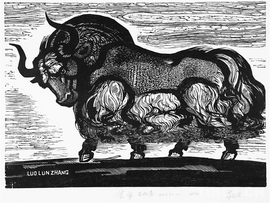 如果非要說我在版畫技法上有什么創(chuàng)新,參照西藏匠人刻經(jīng)文,在石頭上刻出來然后印出來也許就算。這不是一般石版畫概念,那叫石印,平版印刷;我這是凹版印刷。刻起來很費(fèi)勁,我也不管費(fèi)不費(fèi)勁。我有一批這樣的石刻作品。綜合版作品手法較多,我通常分別在石板和木板上刻,然后套起來印。如果搞學(xué)術(shù)交流,也許值得一談。至于說到創(chuàng)新,第一我不認(rèn)為我有什么創(chuàng)新,第二我不認(rèn)為在藝術(shù)上、在美術(shù)上能夠輕易談創(chuàng)新這個(gè)詞。還有第三個(gè)觀點(diǎn):不需要?jiǎng)?chuàng)新。很簡(jiǎn)單,你先把傳統(tǒng)學(xué)到手再說。既是傳統(tǒng),就有它的存在理由,否則早就夭折了,還傳什么統(tǒng)呢?傳,而且統(tǒng)啊!統(tǒng)是什么意思?基調(diào)是它統(tǒng)一起來的。先把傳統(tǒng)學(xué)到手,爐火純青了,神來之筆出現(xiàn)了,才有可能有所創(chuàng)造。基礎(chǔ)是重要的。