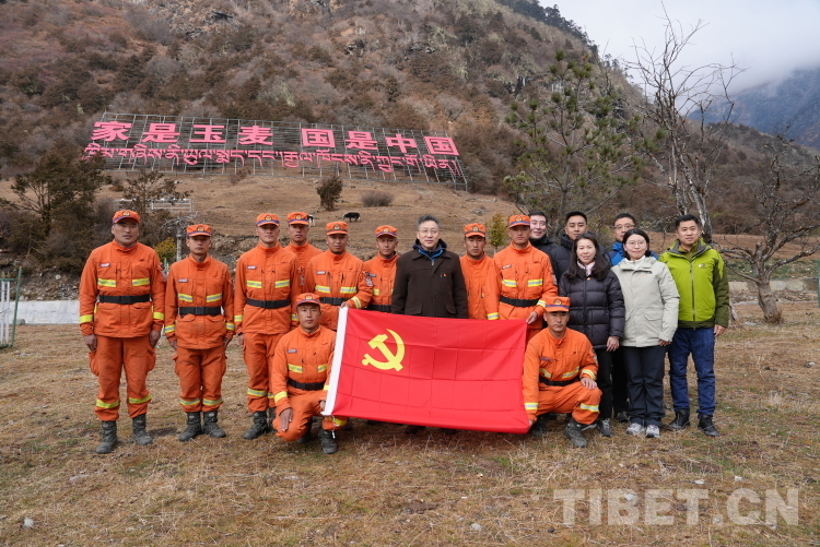 圖為中國西藏信息中心黨支部(現已成立中國西藏信息中心黨總支)與那曲森林消防大隊玉麥駐防分隊重溫入黨誓詞合影 攝影:陳浩力
